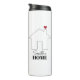 Thermal tumbler featuring the drawing of a house with a heart above its chimney and "Smith's HOME" underneath the house. All the properties of the design components (e.g., its fill and border color, size and orientation) can be customized. To simply change "Smith's" and HOME, choose "Personalise this design" and make your changes. To make more changes, follow the steps below: