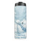 This is a charming and serene digital illustration that captures a moment of pure winter tranquility. The focus is a fluffy, happy polar bear cub resting comfortably in a soft, snowy landscape. The bear is depicted with a content, gently smiling expression, its large, kind eyes conveying a sense of peace and security.