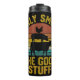 Este gráfico presenta un diseño humorístico con una silueta de vaca, cerdo y pollo apilado contra una puesta de sol retro a rayas. El texto 'SOLAMENTE FUMO LAS BUENAS COSAS' está en una letra atrevida y angustiada, creando un gráfico ingenioso y simple perfecto para un entusiasta de la barbacoa o un maestro de la parrilla.