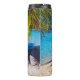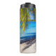 Sombras de una palmera en la playa de Takapoto, una isla del atolón de Tuamotu en la Polinesia Francesa.