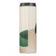 Minimalist Abstract Teardrop Wave featuring a Green, Beige and White teardrop on a Cream, Green and Beige background thermal tumbler / travel water bottle.