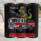 This is a fun and whimsical design featuring a T-Rex dinosaur dressed as a firefighter. The T-Rex is wearing a helmet and gear and is actively aiming a fire hose while riding in the back of a classic red fire truck. The playful wordplay "FIRESAURUS" is prominently displayed below the truck. A potential placeholder name, "Theodore", is at the top of the image. The entire image has a humorous, cartoonish style against a black background.