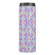 Tall travel mug with a colorful, intricate paisley pattern in purple, pink, green, and yellow. The black lid contrasts with the vibrant design, conveying a playful, lively tone.