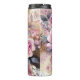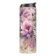 La imagen presenta un ilustracion muy detallado de un joven leopardo rodeado por una variedad de flores vibrantes y florecientes. El leopardo, con su piel de foco y sus ojos expresivos, ocupa un lugar destacado en el centro, creando un punto focal sorprendente. Las flores de los alrededores, predominantemente en tonos rosa y violeta, aportan un toque suave y caprichoso a la composición. El fondo incluye salpicaduras de oro y de colores pastel, lo que realza el ambiente artístico y de ensueño de la imagen. Esta cautivadora mezcla de vida silvestre y elementos florales hace que la imagen sea visualmente atractiva y única, perfecta para productos que buscan evocar una sensación de elegancia y belleza natural.