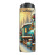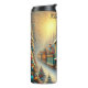 This magnificent artwork features an ornate teal and gold Christmas train, adorned with vibrant bows and wreaths. It glides through a dazzling snowy forest of pine trees, brilliantly lit with festive ornaments. Warm golden light filters through the branches, illuminating the scene. This enchanting image captures the radiant magic and opulent beauty of a truly festive winter journey.