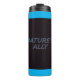 El diseño térmico muestra el texto "El aliado de la naturaleza" en un estilo futurista y multicolor. Los colores son vibrantes y contrastantes, lo que crea un efecto visualmente llamativo. El diseño tiene una estética moderna y elegante, con líneas depuradas y bordes afilados. El ambiente general es de energía e innovación.