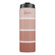 Este tumbler de moda presenta cuatro rayas en diferentes gradientes sombríos de terracota, bronceado y beige neutro y tu nombre en tipografía de escritura para un aspecto boho y moderno.