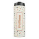 Modelada en baldosas de terrazo italianas, esta botella de tumbler termal tiene un divertido y festivo toque de confeti en cálidos tonos tierra con un toque de color. Esta botella de agua tiene un aspecto limpio y moderno, con baldosas falsas en gris, naranja oxidado, amarillo, gris-verde, verde menta y negro sobre un fondo de color crema. Está listo para ser personalizado con tu nombre en negrita con letras color naranja.