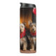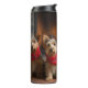 Una escena encantadora capta la esencia de la comodidad y el espíritu de las vacaciones mientras los compañeros peludos adornados en gorras de Santa Claus se reúnen alrededor de una chimenea chocante. La calidez de la chimenea crea un ambiente acogedor para estos adorables caninos, mientras que las medias festivas cuelgan al fondo, lo que crea un ambiente alegre. El encantador ilustracion retrata una imagen atemporal de la compañía y la alegría festiva, perfecta para celebrar la temporada navideña con un toque de encanto canino.
