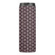 Un patrón consistente en diseños geométricos repetidos cubre todo el marco de una manera similar a la teselación. Los tonos marrones y los toques rosas crean un efecto óptico tridimensional que se asemeja a una superficie acolchada.