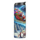 This timeless scene captures the cherished moment Santa takes to the skies. His sleigh, filled with joy, is pulled by reindeer across a frosty night sky. A snowy village below sleeps in quiet anticipation. It’s the classic image of Christmas Eve we’ve loved for generations.