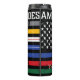 This is a powerful patriotic graphic honoring various public safety and service professions, collectively titled "AMERICA'S HEROES". The design is styled after a distressed American flag, but the traditional stripes are replaced by various "Thin Lines" representing different occupations: Corrections (gray), Dispatch (yellow/gold), Nurse (white/red), EMS (blue/white), Police (blue), Firefighter (red), and Military (green). The name placeholder "Theodore" appears on the Firefighter stripe, making the design a tribute to multiple first responder fields.