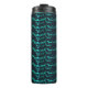 Este diseño honesto y minimalista retrata una escuela de tiburones de un hermoso color azul y cian texturado.