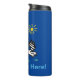 Un Color Azul Medio, Tumbler Termal, Con un Dibujo de un Perro de Caricatura, Tiffany y su Frisbee =(Arte por P.J.M.) con una opción para el personalizar = "¡Tu nombre aquí!", en Color Azul claro Texto.