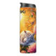Este es un ilustracion impresionante y vibrante de un tigre blanco rodeado por una abundancia de flores. El tigre está durmiendo pacíficamente en un campo de flores de colores con mariposas volando a su alrededor. El fondo es un cielo luminoso y soleado con un sol radiante que arroja un cálido resplandor dorado. La estética general es tranquila, serena y llena de belleza natural.