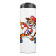 Este animado ilustracion cuenta con un alegre tigre personalizado con uniforme de béisbol y gorra, sosteniendo un bate en medio de la balanza. La piel naranja vibrante del tigre, su patrón rayado y su postura energética lo convierten en un personaje cautivador y dinámico. Los colores brillantes y el diseño lúdico encarnan la emoción del juego.