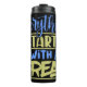 Este gráfico presenta una cita inspiradora en una mezcla de letras negrita y de guión, fijada sobre un fondo negro sólido. La palabra "Todo" está en un guión azul claro en la parte superior. Debajo, "STARTS" está en un tipo de letra negrita, en bloque amarillo, seguido de "CON A" en el tipo de letra azul claro y, finalmente, un "DREAM" grande y prominente en el tipo de letra amarillo. Las líneas horizontales amarillas delgadas enmarcan el texto.