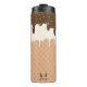 Este lindo tumbler termal monograma muestra un diseño lúdico de un cono de gofre que brilla con crujiente salsa de chocolate y vainilla. Personalizar con tu nombre inicial y un toque personal. Perfecto para mantener sus bebidas favoritas calientes o frías, este tumbler combina funcionalidad con un toque divertido y elegante. Perfecto para añadir un toque dulce a su rutina de hidratación. c) El estudio Happy Cat Studio