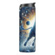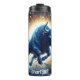 Un potente toro de color azul con ojos brillantes que se carga dinámicamente a través de una vibrante escena cósmica llena de planetas, estrellas y energía giratoria. Fragmentos de cadenas se separan de su poderosa forma mientras salta por la galaxia, rodeada por una ráfaga radiante de luz. Este ilustracion encarna el poder celeste y la energía cósmica indomable.