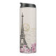 postal de la torre Eiffel vintage con reflejo de flores rosadas