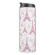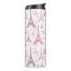 Las torres Eiffel ilustradas en rosa y púrpura con corazones dibujados a mano en un patrón repetido. Personaliza tu nombre o mensaje en una fuente morada.