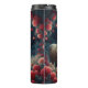 Este fantástico ilustracion representa tres cebras juntas en un exuberante jardín lleno de rosas rojos y blancos. En el fondo, corazones rojos brillantes cuelgan de un cielo profundo azul y estrellado, creando una atmósfera mágica y romántica. La escena es a la vez caprichosa y dulce.