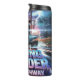 Esta imagen muestra un poderoso semi-camión con brillantes faros acercándose a la cabeza, con el estilizado texto "ROLLING THUNDER ON the HIGHWAY" en letras negrita, metálicas, azul y violeta. El fondo es un cielo nocturno dramático lleno de rayos y nubes giratorias, que aumentan la sensación de velocidad y poder. La autopista en sí está iluminada con senderos luminosos, que enfatizan el movimiento.