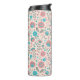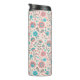 Características del este diseño del arte popular un estampado de flores verde azulado y coralino.