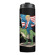 Termo Trump montando dinosaurio T Rex bandera estadounid