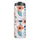 Un tumbler de acabado robusto y brillante mantiene las bebidas frías o calientes, tal como te gustan. Sujete 18 onzas de líquido. Un colorido, de color turquesa y con follaje azul y verde azulado cubren todos los lados de este tumbler.