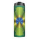 Si te gustan los colores de un pavo real, este diseño será genial para ti. Los tonos verdes, dorados y azules de la oscuridad a la luz dan al círculo un aspecto 3D con un cierto estilo que recuerda a la pluma de un pavo real.