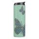 Las alas, el cuerpo y las antenas de una mariposa monarca están adornadas con patrones encontrados en mosaicos y tallados en los edificios y objetos decorativos de Marruecos. El azul, el verde, el oro, el blanco y el rojo intenso pintan estos motivos geométricos y de inspiración floral, aportando colores destacados e importantes en las obras de arte marroquíes.