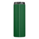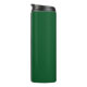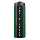 Elegante tumbler termal verde oscuro con dos finas rayas blancas y una amplia franja vertical negra en el centro con un nombre personalizado.