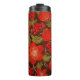 Un cuadro de estilo Petrykivka presenta flores y bayas rojas vibrantes, con motivos complicados y pinceladas delicadas. Las flores son grandes y simétricas, rodeadas de pequeños elementos florales y hojas ornamentales. Las bayas, probablemente racimos de viburno, se realzan con un detalle fino, dándoles un aspecto realista y a la vez decorativo. La composición está arreglada de manera tradicional ucraniana, mostrando contrastes brillantes y un armonioso balance de colores en un fondo blanco o claro. La obra de arte ejemplifica la elegancia y tradición folclórica de Petrykivka.