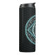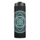 Esta mandala fue diseñada para el símbolo del zodiaco, Aquarius, que representa una piedra turquesa en el centro rodeada de elementos que representan el signo, como el símbolo del signo, la constelación y el símbolo alquímico del Aire, así como las viñas y tejas de fibra que la envuelven en una imagen sólida en tonos turquesa, plateado y negro.