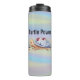 Tumbler térmico con ilustraciones de tortugas y las palabras "Poder de tortuga" en un fondo pastel a rayas. Gracias a Creative Fabrica por las tortugas. La palabra "Poder de tortuga" puede ser eliminada o reemplazada.