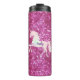 Este encantador tumbler termal presenta un diseño de unicornio caprichoso adornado con acentos brillantes que imitan piedras preciosas rosas. Mantenga sus bebidas calientes o frías durante horas. Añade tu nombre para un toque de magia personal. Perfecto para los amantes del unicornio en movimiento.