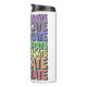 Mug de viajes - Día del profesor ¡Gracias a un profesor! Reconocer las muchas cosas que hace un profesor en un día: Alojar, Abogar, Cafeinar, Colaborar, Comunicar, Educar, Facilitar. Texto maravillosamente impreso en colores arcoiris. Regalos para profesores, administradores de escuelas, consejeros escolares, bibliotecarios, auxiliares de aprendizaje, tutores
