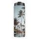 Tumbonas de madera marrón cerca de la piscina rodeadas de palmeras