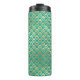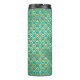 Turquesa vintage - Tumbler con temática de pavo real verde azulado y dorado.