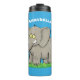 Termo Un extraño elefante gracioso con un pájaro en el p