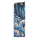 Este hermoso arte de fantasía cuenta con un lobo blanco parado en un bosque luminoso bajo una luna brillante. La escena es mágica, con árboles cubiertos de nieve y brillantes cristales y flores en primer plano. El arte tiene un ambiente muy sereno y etéreo, perfecto para un diseño espiritual o de temática natural.