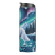 Este hermoso ilustracion cuenta con un lobo blanco y místico caminando a través de un lago helado cubierto de cristales de hielo. La escena se sitúa bajo un majestuoso cielo nocturno lleno de la aurora boreal, dos lunas y una luna llena. El arte tiene un sentido muy fuerte, espiritual y fantástico, perfecto