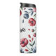 Este delicado ilustracion florido tiene un borde de flores estilizadas en tonos rojos y azules, con algunos pétalos sueltos. Las grandes flores y hojas verdes crean un hermoso marco alrededor de un centro en blanco. El arte tiene un ambiente suave, romántico y encantador, con una suave acuarela y un fondo blanco limpio.