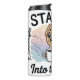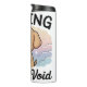 Este lindo ilustracion presenta un pequeño cachorro marrón con ojos grandes y redondos, sosteniendo una taza de café humeante. El perro está colocado en un entorno caprichoso y turbio. Las palabras de arriba y abajo dicen, "EMPEZANDO al vacío", dando al arte una sensación muy graciosa y relativa de estar abrumado.