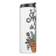 Este encantador ilustracion cuenta con una tetera verde con las palabras "cálido y acogedor" en una etiqueta, colocada dentro de una canasta. La cesta está llena de hojas de otoño y rodeada de flores rosas. El diseño está enmarcado por el texto "Artículos de París" en la parte superior, lo que le da al arte un aire muy lindo, rústico y acogedor.