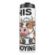 Este gracioso ilustracion cuenta con una vaca de aspecto gruñón con una taza de café. La vaca tiene una expresión descontenta y los papeles vuelan alrededor de su cabeza, lo que sugiere un ambiente de trabajo estresante. Las palabras "ESTO ME ESTÁ ANNOTANDO" están en la parte superior y inferior del arte, dándole una sensación muy humorística y relacionable.