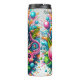 Este ilustracion vibrante y colorido presenta una cebra con un mohawk rosa brillante que sopla un trozo de bblegum. Lleva un par de gafas de sol reflexivas y coloridas. El fondo es una explosión de formas y salpicaduras luminosas y abstractas que le dan al arte un aire muy divertido, moderno y enérgico.