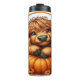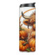 Una vaca altisonante personalizado rodeada de calabazas otoñales y elementos de cosecha, evocando un ambiente festivo y lúdico de otoño.