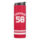 Este tumbler termal con un nombre y número personalizados sería un regalo maravilloso para cualquier jugador deportivo y ventilador en la temporada fría! El audaz diseño de rayas con un gran número seguro que destacará en el campo y en la cancha deportiva.